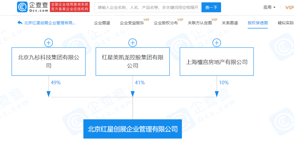 新京报贝壳财经讯 企查查App显示,4月19日北京红星创展企业管理有限公司成立,注册资本5000万元人民币,法定代表人为李林威,经营范围包含企业管理;房地产开发;建设工程项目管理;经济贸易咨询;市场调查;企业策划等。企查查股权穿透显示,该公司由红星美凯龙控股集团有限公司、北京九杉科技集团有限公司等共同持股。
